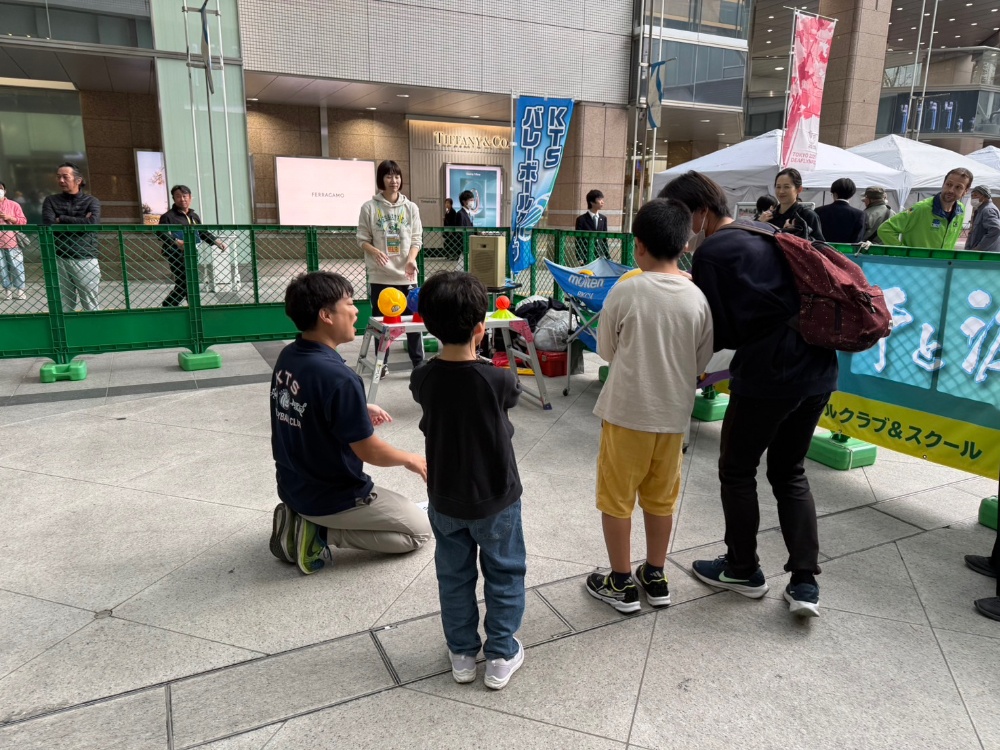 コーチ自らネットを張り、的当てコーナーなどの体験ブースをセット。